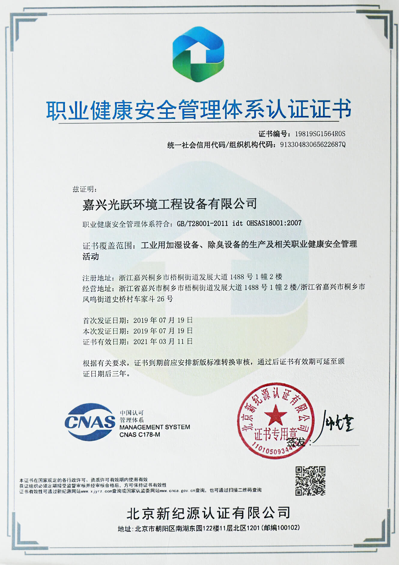 通過了ISO9001、ISO14001、OHSAS18001、AAA和CE等管理體系的認(rèn)證
